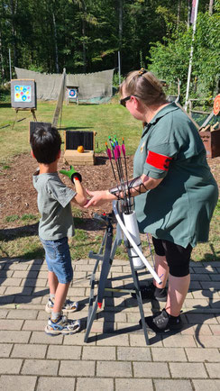 Mit den vermutlich letzten warmen Sonnenstrahlen diesen Jahres fand der Integrationsnachmittag der Schützengilde Faßberg e.V. in Zusammenarbeit mit dem Integrationsbüro der Gemeinde Faßberg, in Kooperation mit dem Landes Sport Bund am Samstag den 20.09.2025 statt. Clara Heinrich vom Integrationsbüro übernahm die Einladung und sprach gezielt beim Sprachkurs Familien an. Die Schützengilde konnte mithilfe des Landes Sport Bundes ordentlich auffahren. Mittlerweile schon zur Tradition natürlich mit Bogenschießen und Blasrohrsport. Aber auch an unsere kleinen Gäste wurde gedacht eine große Hüpfburg im Dschungel Design schmückte den Platz, ein Fußballfeld wurde abgesteckt und die großen Spielbälle sorgten für ausreichend Action. Das Ziel war es das Bogen- und Blasrohrschießen bekannt zu machen und den Gästen einen schönen Nachmittag zu bereiten.